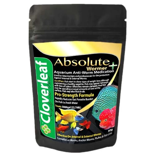 Absolute Wormer+ is an effective medication against Skin flukes (Gyrodactylus), Gill Flukes (Dactylogyrus), Internal Worms (Nematodes), Hexamita, Anchor worm (Lernea), Leeches (Piscicol) and Fish Lice (Argulus). With pH Buffer added in, this treatment makes sure to keep not only your fish but your water healthy.