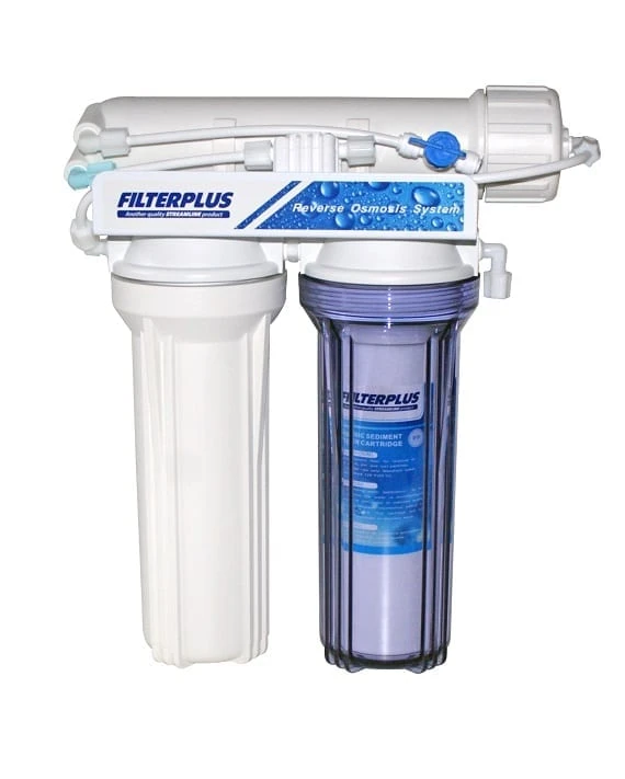 The Filterplus® water filtration system from Streamline® is designed to de-ionise tap water and is simple to install and maintain. It comes with full instructions, pre-filters, RO membrane, self-piercing tap kit, 40mm waste kit, red (waste) and blue (pure water) tubing, and a filter spanner.