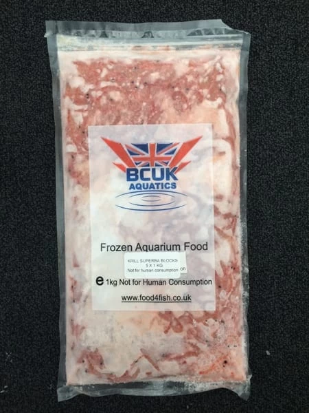 Krill superba is ideal for feeding to large predatory tropical and marine fish but is also excellent for feeding to aquatic turtles. krill is a wonderful frozen fish food to feed a great variety of fish, promoting both health and colour from a nautural source Size approx 3-4cm This frozen fish food is Gamma Iradiated to ensure it is pathogen free. Suitable for freshwater and marine fish. Typical Analysis Protein 14% Fat 1.8% Fibre 0.7% Ash 0.5%