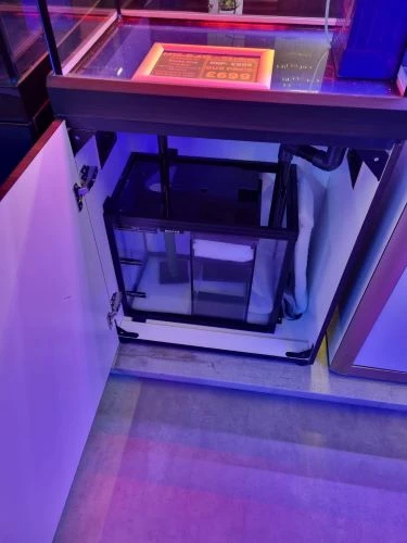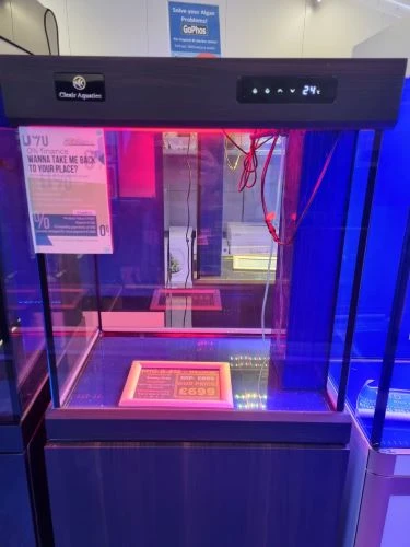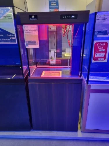 Like most other aquariums in the cleair range the Lavant is a robust and stylish aquarium with integrated pipework and sump based filtration. The lavant also has the popular and powerful LED lighting present on other cleair aquariums. Where it differs, is that it can be used as a room divider. By that we mean the aquarium can be viewed from both sides. The cabinet appears identical on both sides, although there is a soft close door on the one side and a false door on the other. The weir is situated at the one end of the aquarium, which if used as a room divider would be the end you push up against the wall.