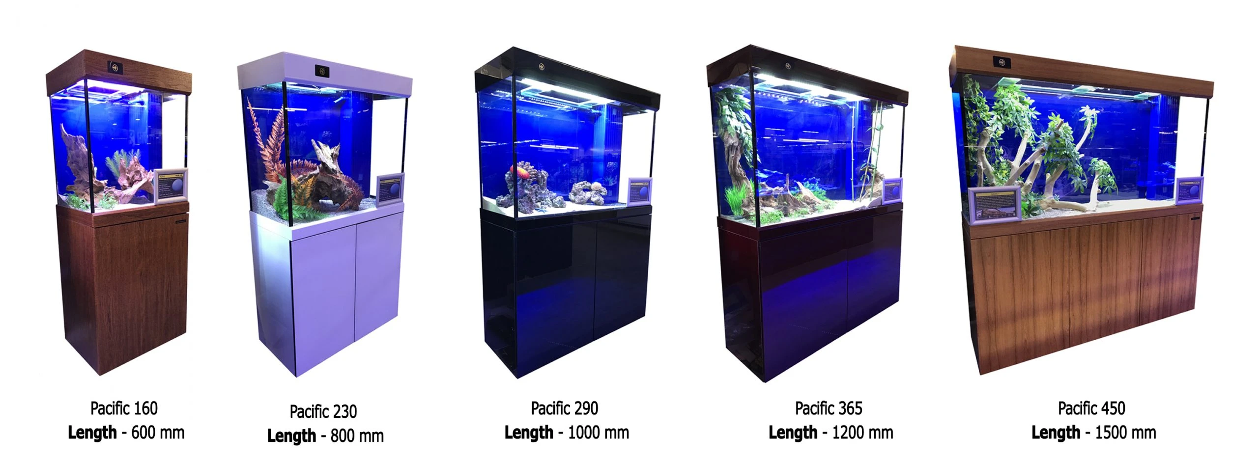 Each aquarium comes with plumbing, LED lighting, either remote control or computer and a multi chamber sump and corner weir.