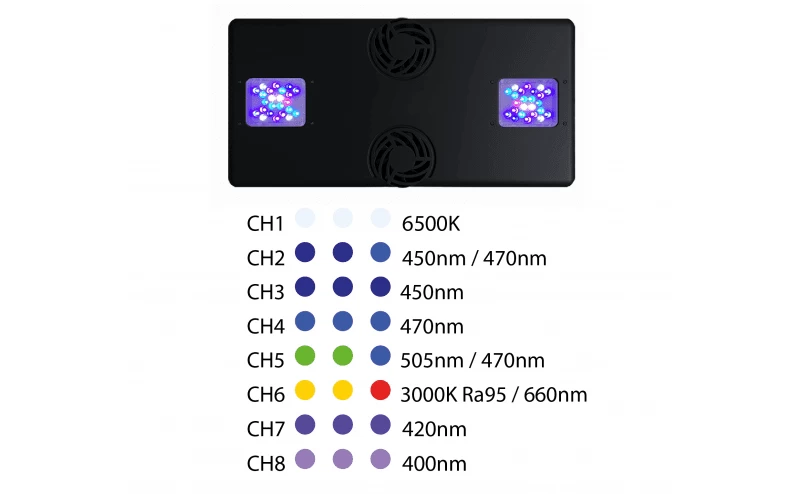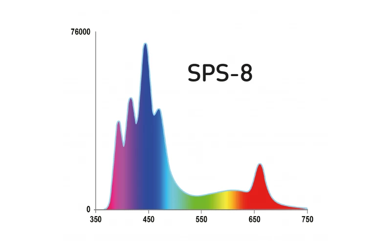 The SPS-8 offers a higher level of control with 8 individually adjustable channels and higher PAR levels with the inclusion of warm whites and red to mimic the light of shallow reefs of the tropics.
